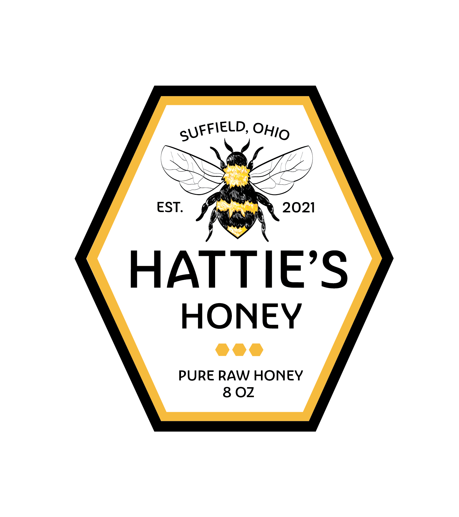 I created a graphic logo for Hattie’s Honey, a local honey business based in Suffield, Ohio. For her Fall 2023 product line, the packaging called for a fresh hexagonal label design that reflects both the delicate beauty and geometric structure of bees. This included illustrating a detailed honey bee to anchor the logo, capturing the natural essence and handcrafted quality of the product.