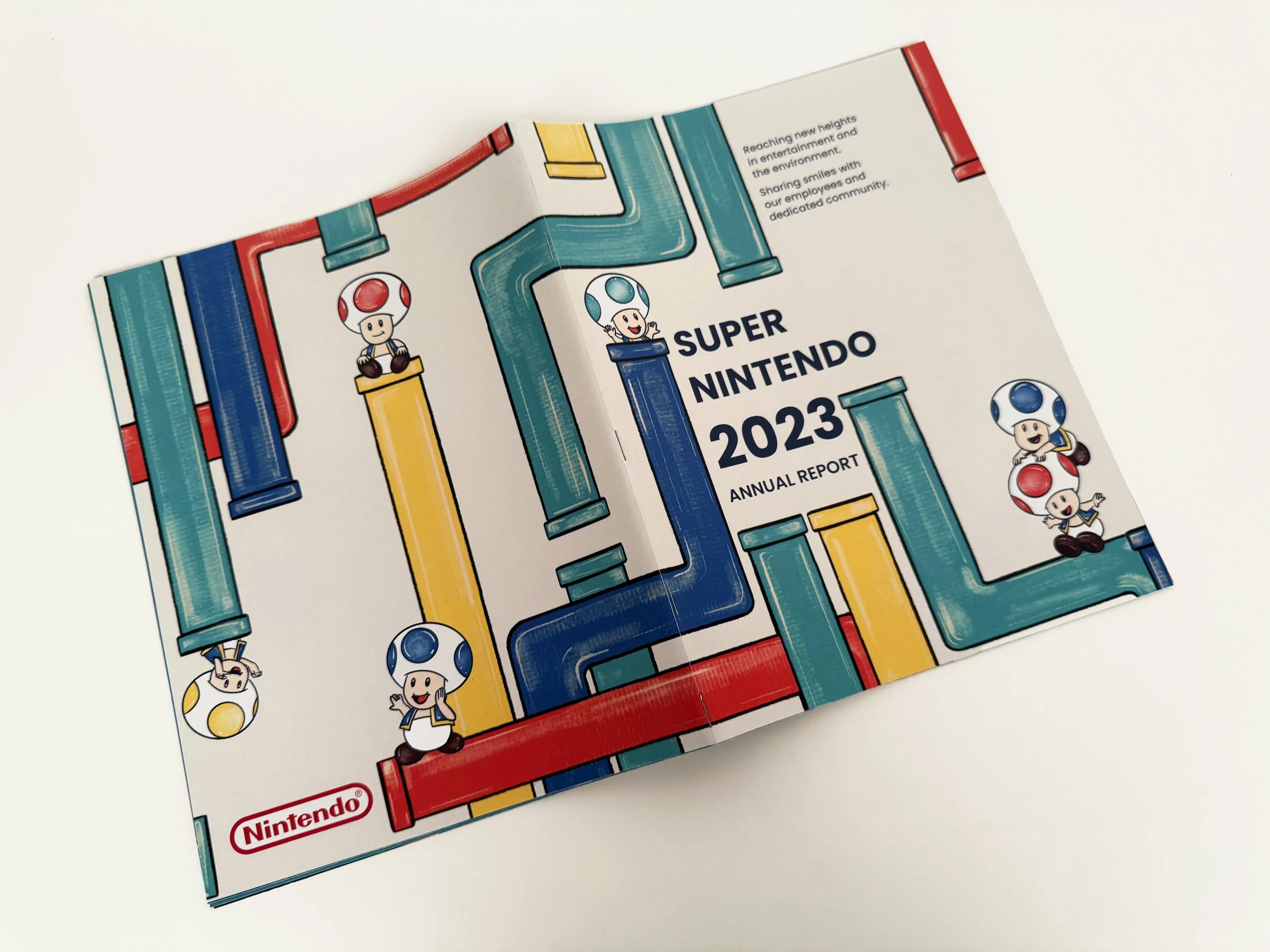 As a student project, I crafted a 2023 annual report for Nintendo, blending a playful typographic narrative with hand-drawn illustrations and meticulously organized financial data. For this illustrative approach, I created vibrant digital artwork featuring iconic Super Mario characters and items across 12 dynamic spreads.